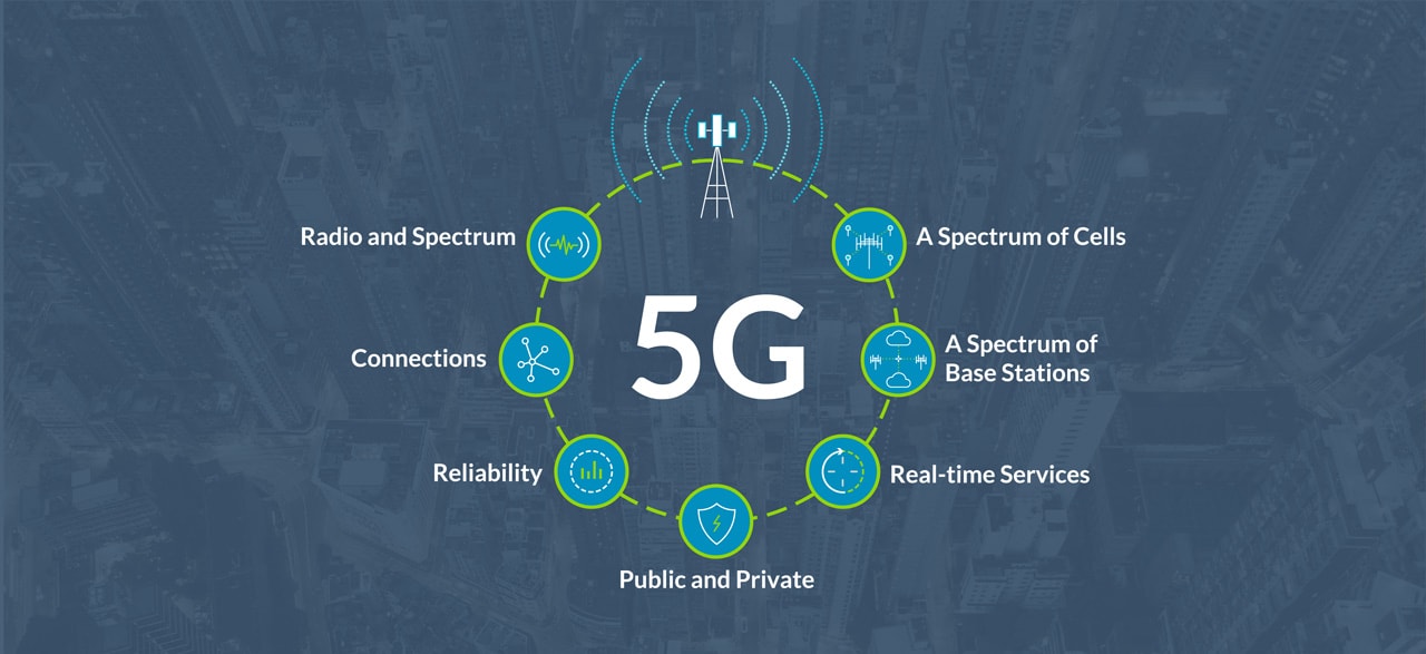 - 無線電與頻譜:5G 具有適用於不同使用場景的低頻段 (1 GHz 以下)、中頻段 (1 GHz 至 8 GHz) 與高頻段 (24 GHz 至 40 GHz)。各頻段對效能、容量、速度與延遲,都有著自己的一套要求。